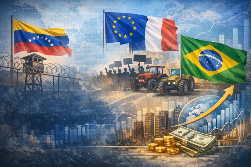 A primeira semana útil de 2026 apresentou três movimentos centrais no campo das negociações, conforme reportado pelo Valor Econômico. No cenário internacional, o governo venezuelano anunciou a libertação de presos políticos em meio à intensificação da pressão externa e ao debate institucional nos Estados Unidos. Já no campo comercial, o acordo entre Mercosul e União Europeia voltou a enfrentar resistência política relevante, com a França declarando voto contrário em meio a protestos internos. Ao mesmo tempo, no mercado financeiro, empresas brasileiras iniciaram o ano antecipando captações externas, buscando negociar em um ambiente considerado mais previsível antes do avanço do calendário eleitoral e de potenciais oscilações macroeconômicas.